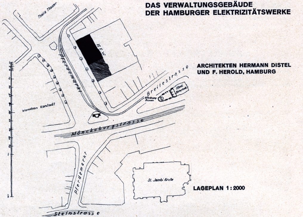 Architekten Hermann Distel in Gemeinschaft mit der BAuleitung der H.E.W., Architekt F.Herold, Hamburg